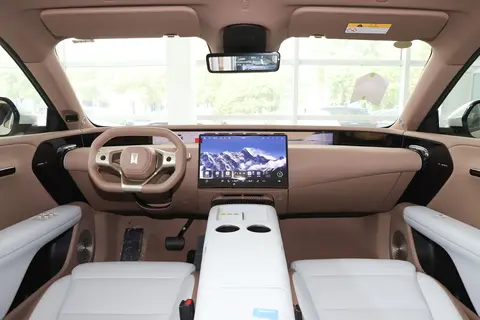 内饰以操作便捷性为核心搭配豪华元素,阿维塔 07 2026 款 Max+ 后驱增程版 39.05kWh 版的中控台采用悬浮式设计,搭配 15.6 英寸中控屏和 35.4 英寸一体式远端屏,屏幕分辨率高,显示清晰,强光照射下也能看清屏幕内容。中控屏搭载鸿蒙座舱 HarmonySpace 5,操作流畅,没有明显卡顿,内置导航、音乐、视频等常用功能,支持手机互联,连接后能同步手机里的应用,不同应用之间切换响应及时。空调控制区域集成在中控屏里,支持语音控制,说一句 “打开空调,调到 24 度”,系统可实现响应,减少驾驶时的操作分心,语音识别支持多种方言,准确率较高。