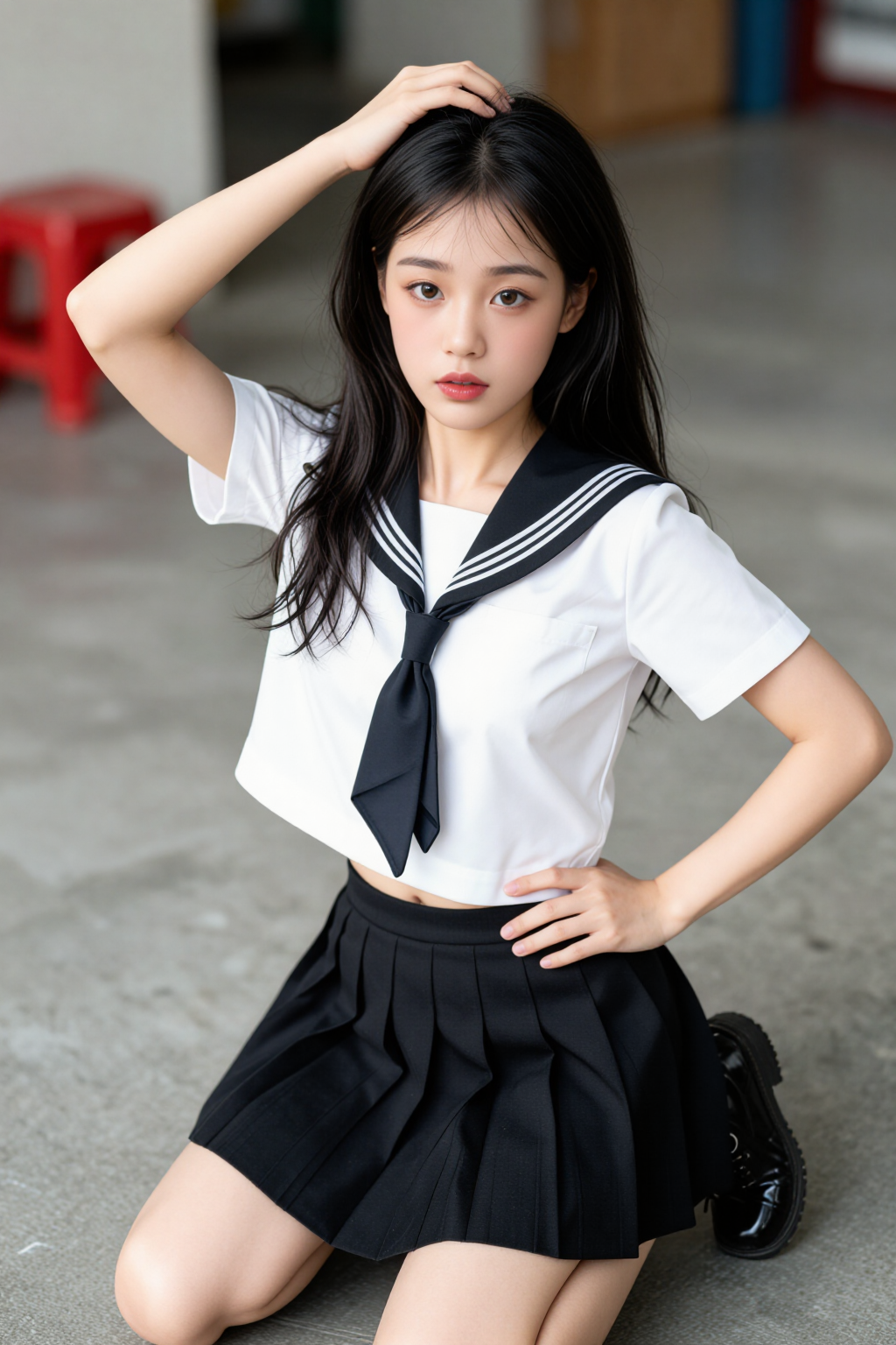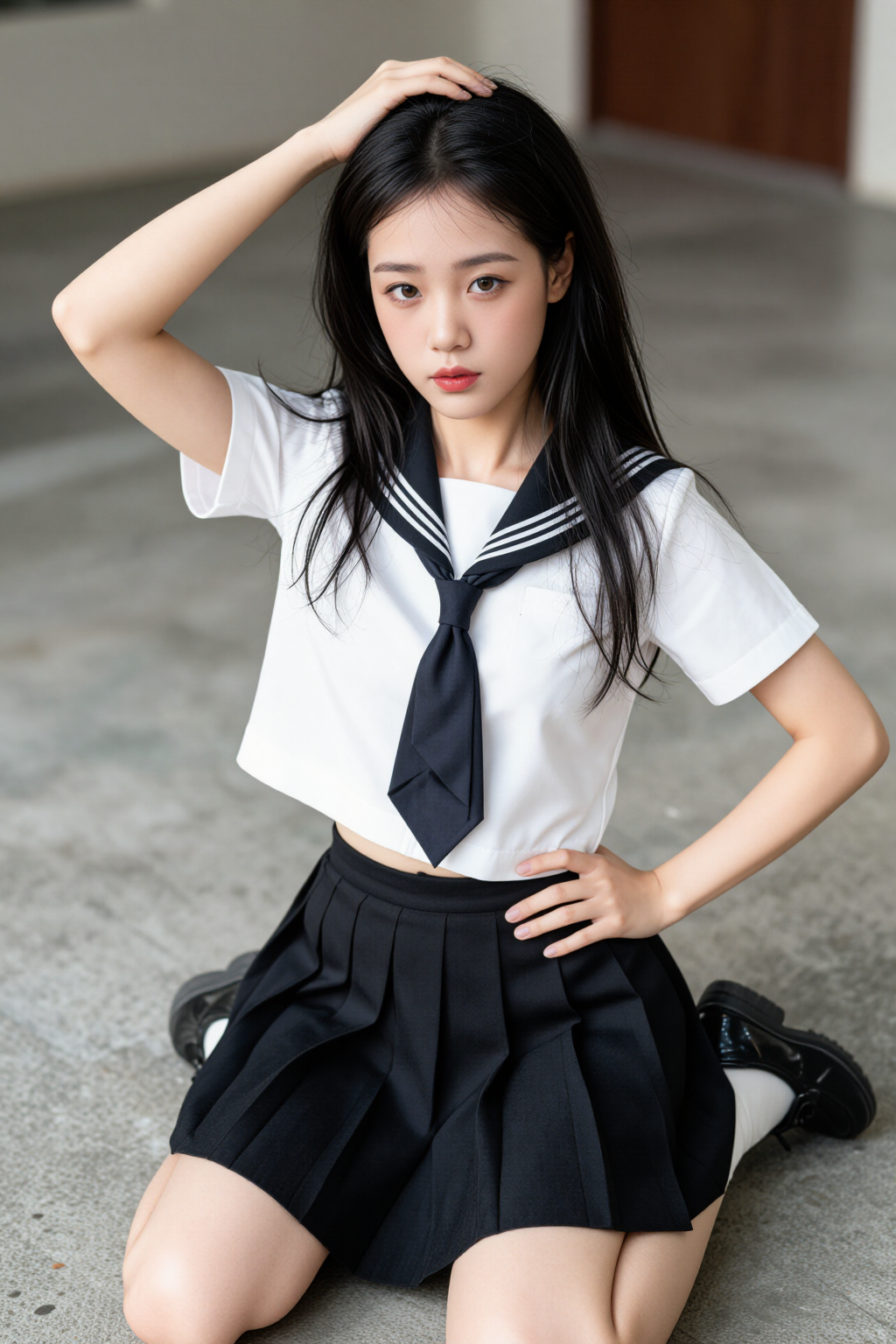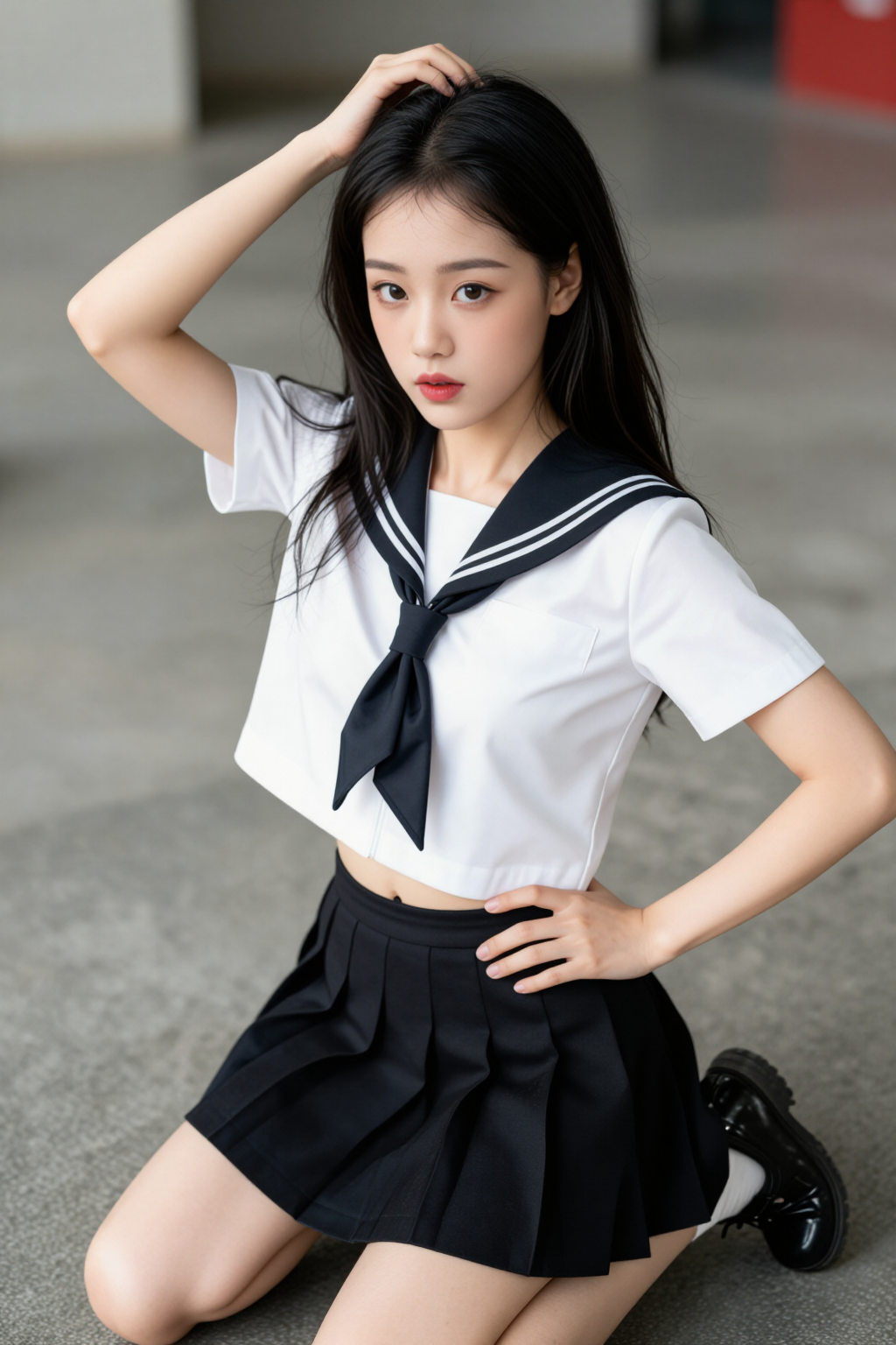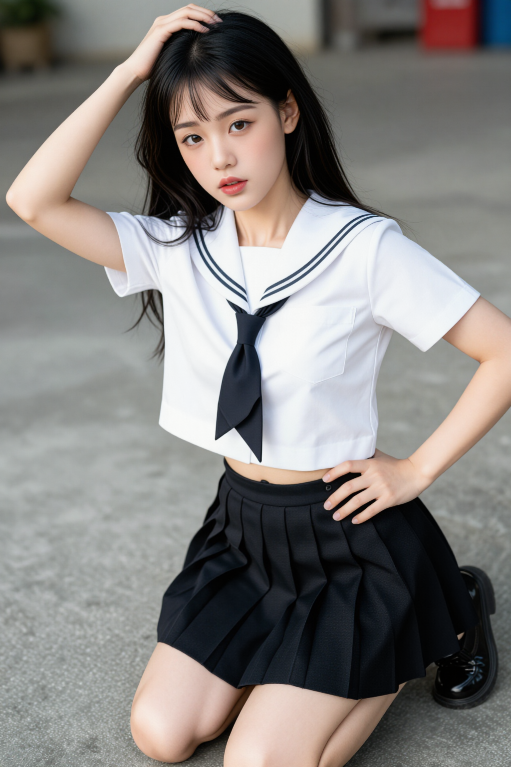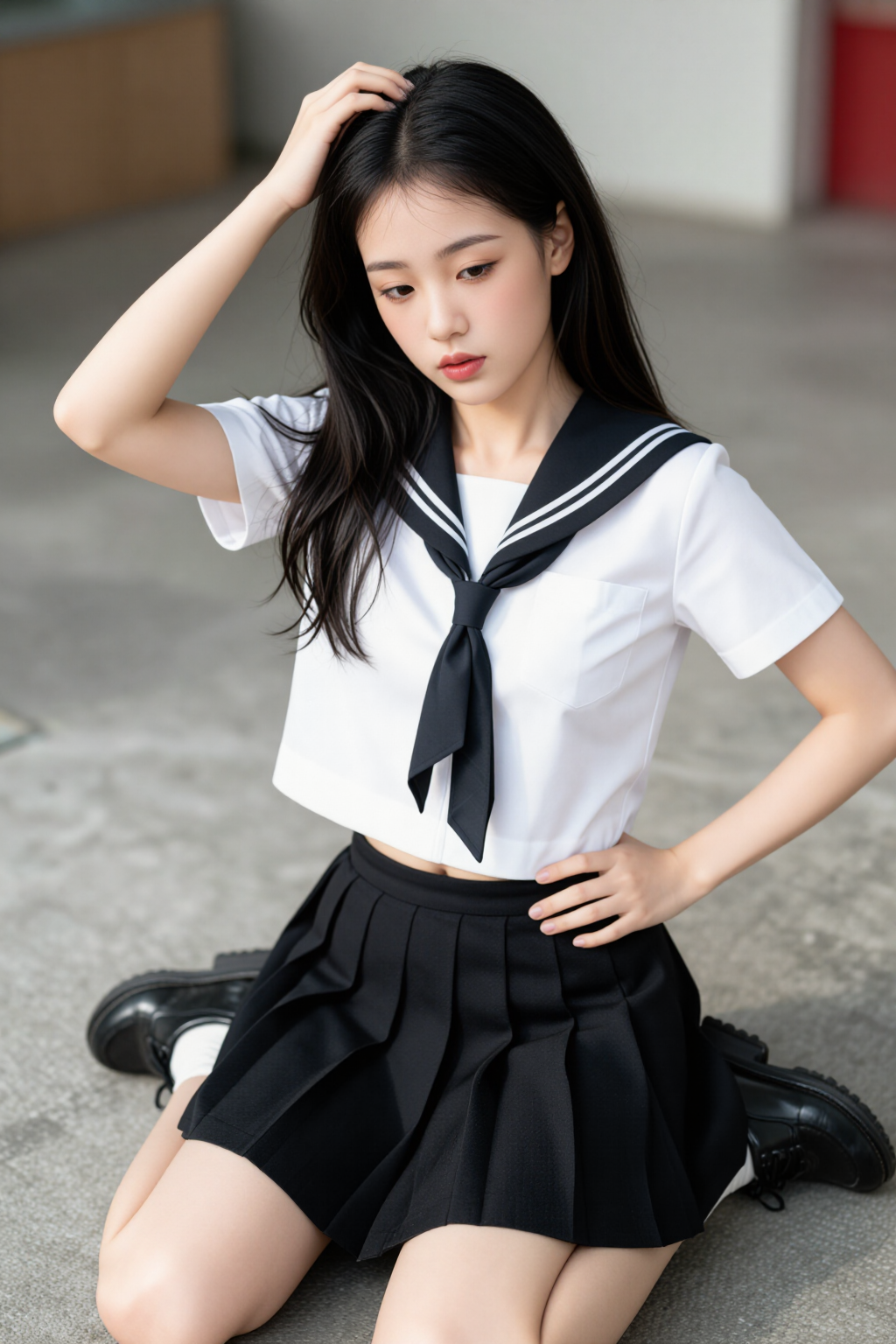 A字百褶裙是这套搭配的核心,经典的黑色百褶设计,既能巧妙修饰胯部和大腿线条,又能随着动作呈现出灵动的质感。裙长控制在大腿中部,刚好盖住最粗的部位,同时最大程度拉长腿部比例,小个子也能轻松驾驭。