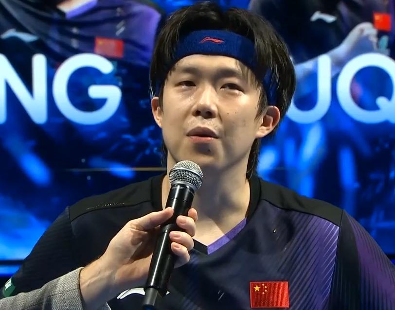王楚钦:首先首先还是非常感谢大家对我从一开始到最后都有你们的陪伴。我觉得我还是非常的非常的开心能再一次说句,说出那句话,我这次也没让你们失望。