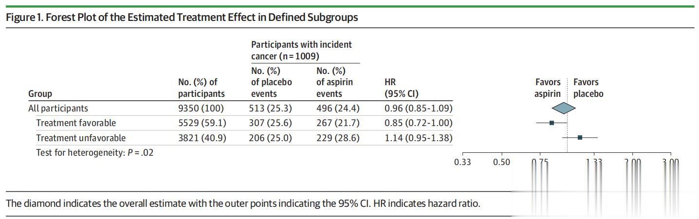 治疗有害组占40.9%(3821人),他们用低剂量阿司匹林后癌症风险反而升高了14%(HR=1.14,95% CI 0.95-1.38)。这些老人的共同特点是: