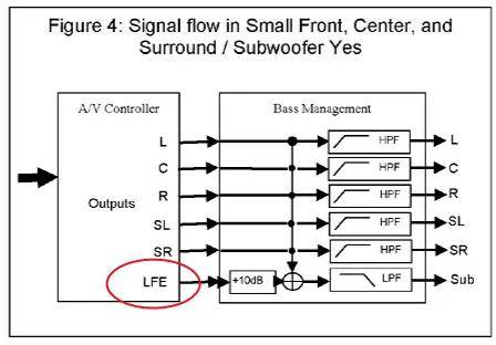 扯远了,总之就是说,不管你用多少只低音炮,都属于“.1”,也就是LFE通道或者说LFE+SUB(其它声道切下来的低频部分)。
