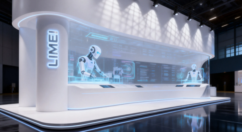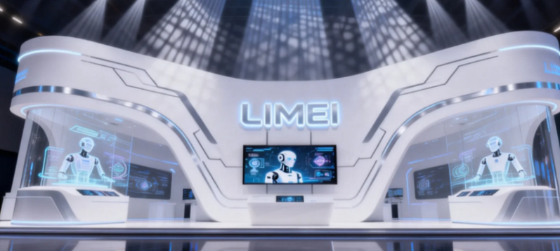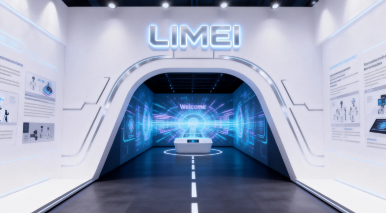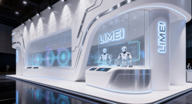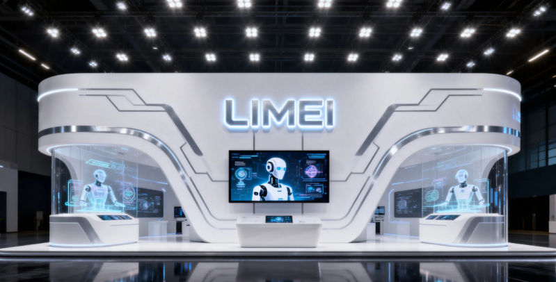 入口引流区(核心):展位靠近主通道一侧设主入口,宽度≥3 米,无任何遮挡,直接展示核心机器人动态演示画面(如机械臂焊接、码垛),搭配动态灯光、品牌 LOGO 墙,3 秒抓住观众注意力。入口不设大型展柜、接待台,接待台放在入口一侧,既不挡人流又方便引导。