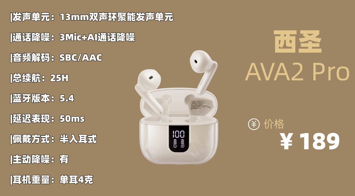综合口碑排名前列品牌:西圣AVA2 Pro蓝牙耳机