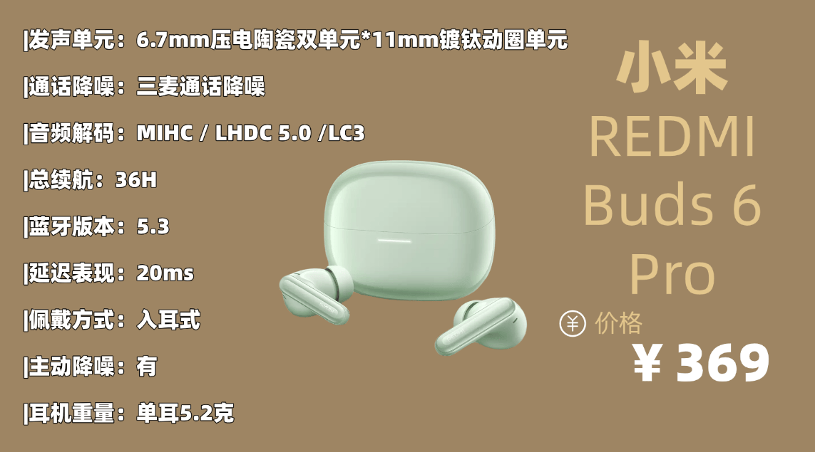 蓝牙耳机单品九:小 米R EDMI Buds 6 Pro蓝牙耳机