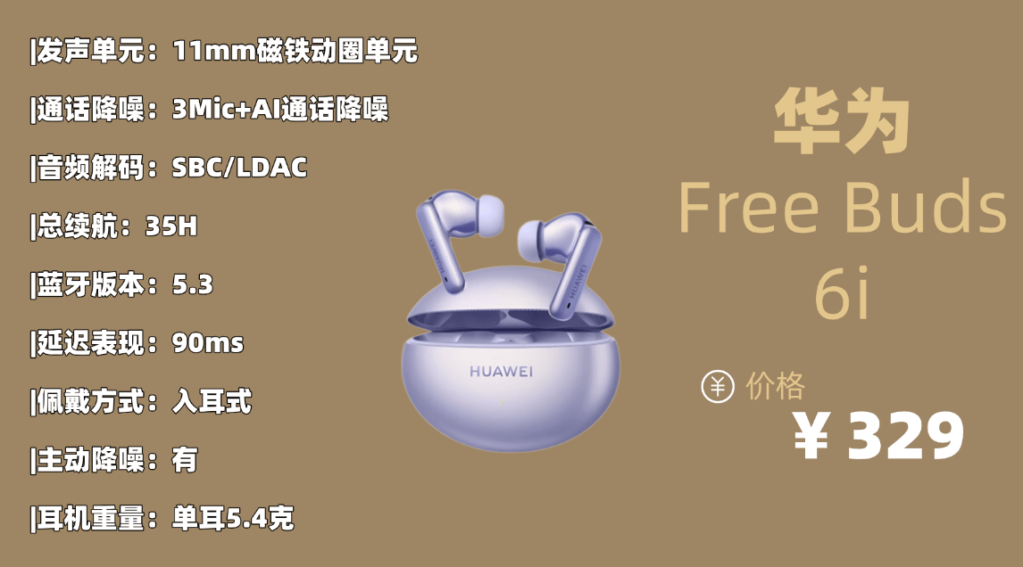 蓝牙耳机单品二:华 为F ree Buds 6i蓝牙耳机
