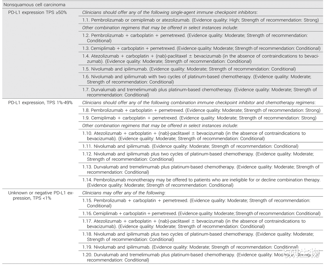 ▲IV期无驱动突变非小细胞肺癌及非鳞状细胞癌患者的一线治疗方案