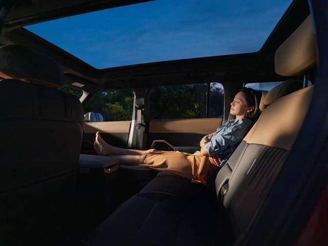 户外露营中,比做饭更头疼的就是睡觉。针对露营过夜痛点,智趣烈马堪称超舒适的“恒温安心露营空间”:一、二排座椅一键就能放平,直接变成2米的平整大床,最关键的是不用动后备箱的行李!怕夜里冷或热?B柱有独立的出风口;怕手机没电?枕边就有快充口。阅读灯还能调色温,看书不晃眼,睡觉也不刺眼。行业首创的原厂电动举升顶绝对是“睡在风景里”的关键。举升车顶打开后,车内高度直接增加36厘米,是同级唯一铺上床垫还能坐直的设计。篷布用的是福特敞篷车同款防泼水材质,而且能快速拆卸换装。更智能的是,它能联动雨量传感器——下雨时自动关闭,再也不用半夜爬起来收帐篷。