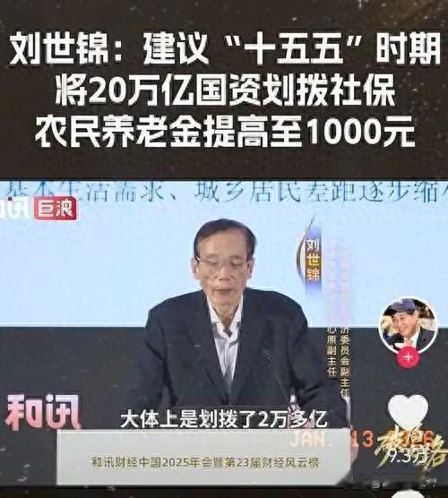 而刘世锦专家关于“十五五”划拨20万亿国资充实社保、提升农村养老金**的建议,一出就引爆全网点赞!这不是空喊口号的民生畅想,而是戳中痛点、顺应民心的务实之举,是对农村老人一辈子付出的深情回应,更是共同富裕最鲜活的注解!