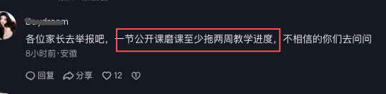 为了那40分钟的“完美呈现”,老师们的剧本早就写好了。评论区里有老师透露,为了一个公开课奖项,同一教案在不同班级试讲五六遍甚至十几遍。哪个学生回答哪个问题,答案精确到字;小组讨论谁发言、谁记录,甚至连“不会举手举半高、会举高”这种细节都要彩排。