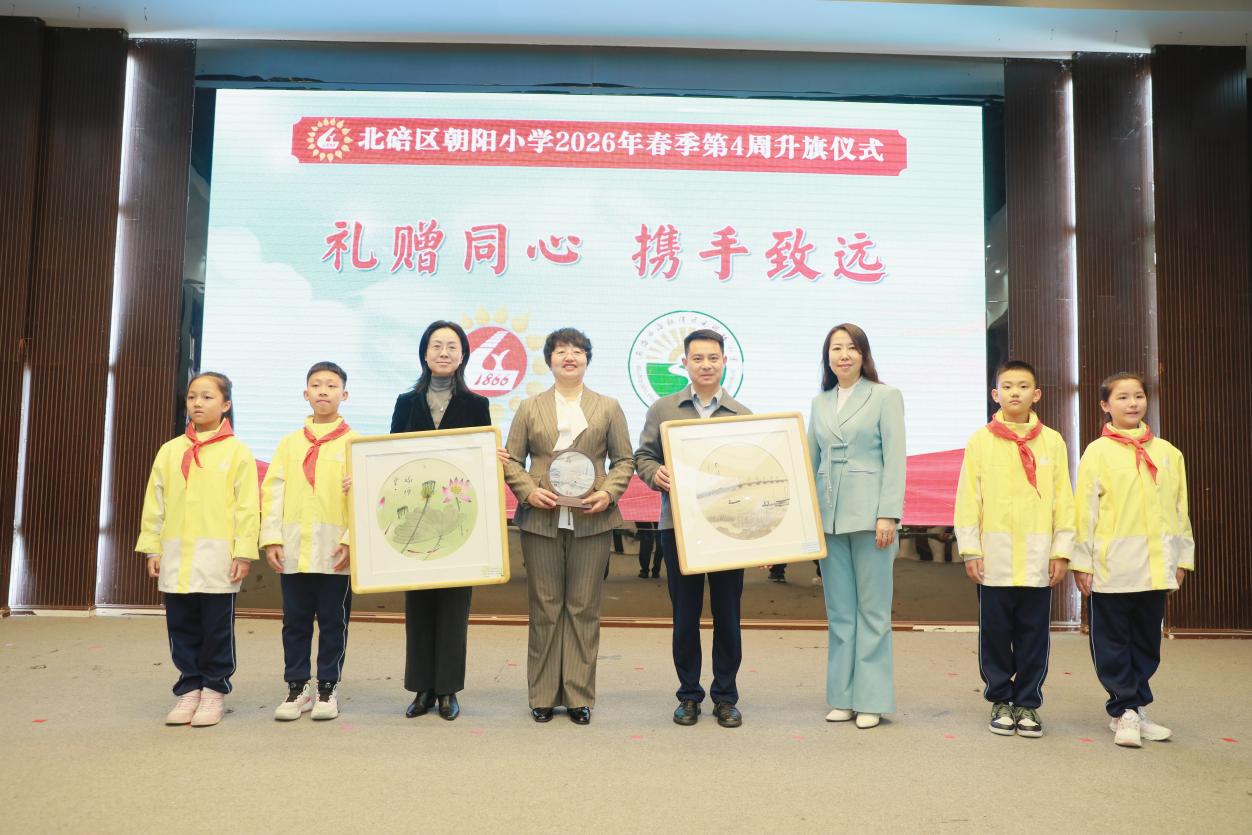 访问伊始,朝阳小学第4周升旗仪式如期举行,远道而来的光明路小学师生让这场庄严的仪式更添暖意与意义。伴随着朝阳,五星红旗冉冉升起,两校师生肃立致敬,共同见证这一承载着友谊与期盼的时刻,也拉开了本次交流活动的序幕。