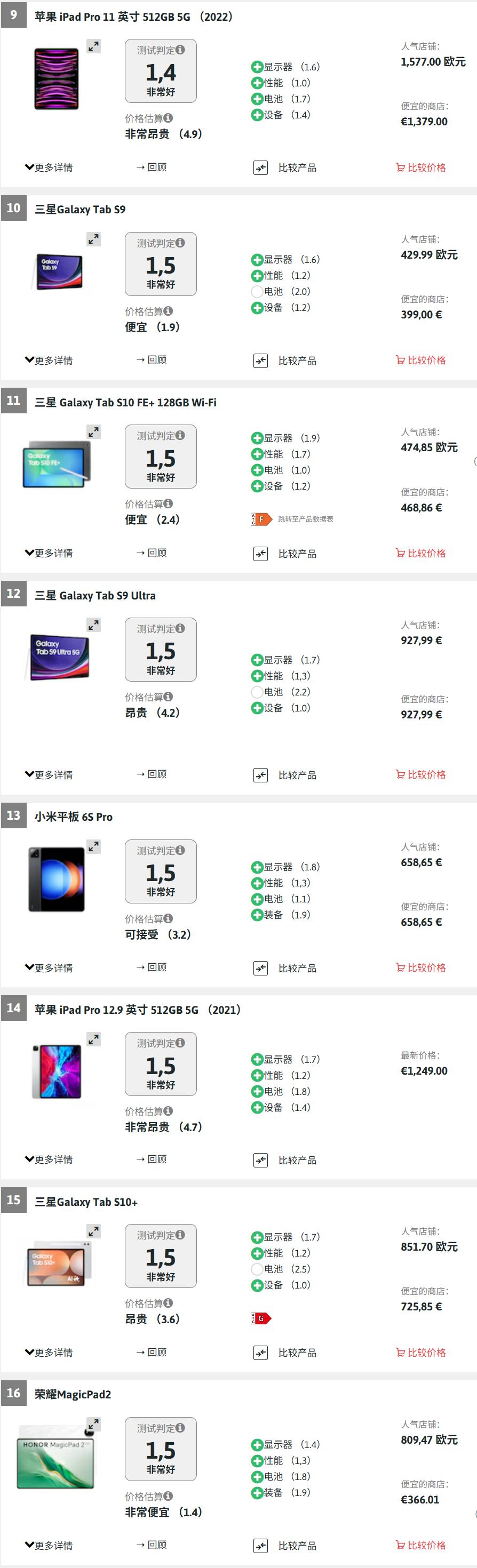 366 - 809 欧元33 款良好平板中 13 款中国造