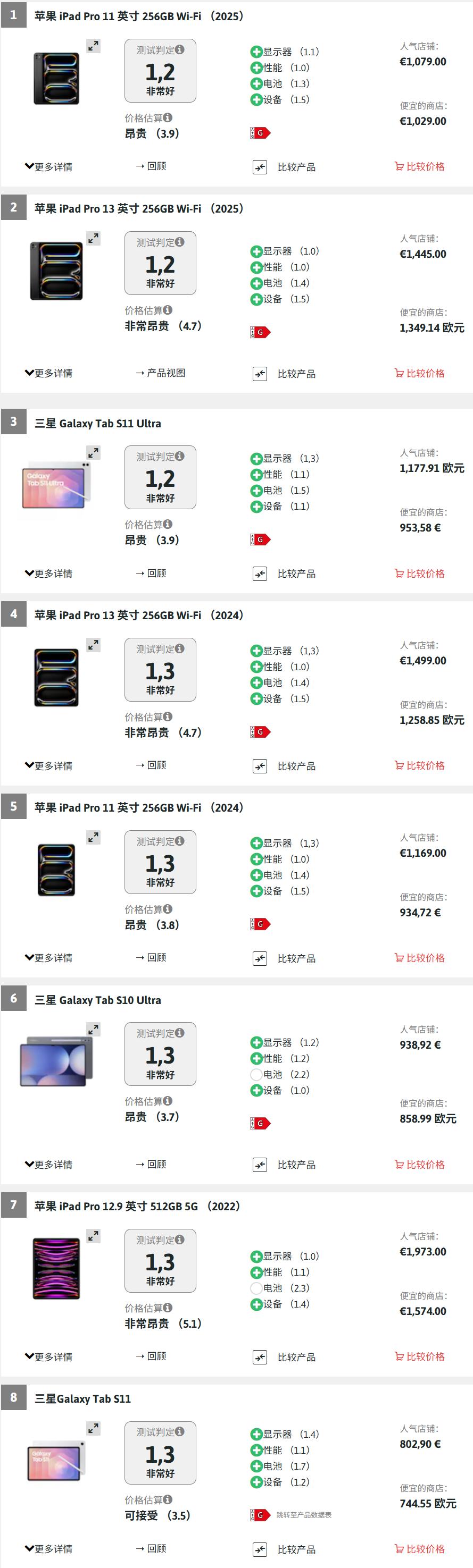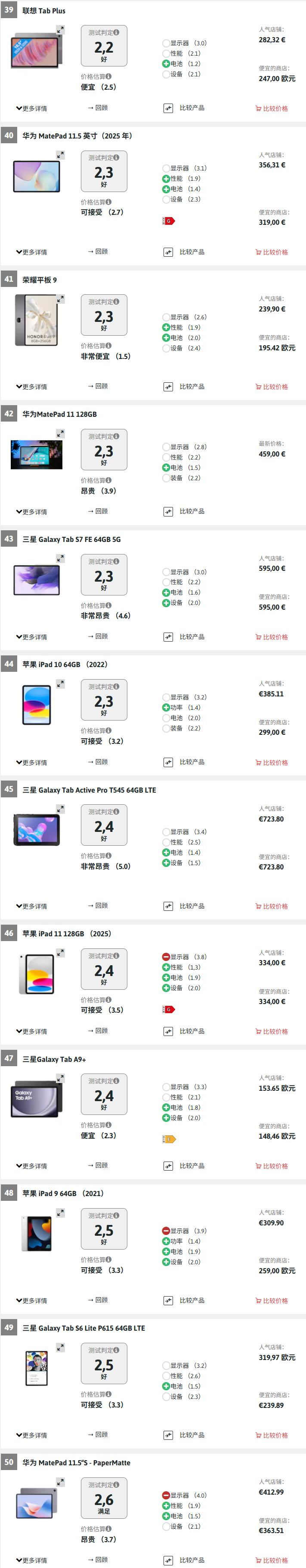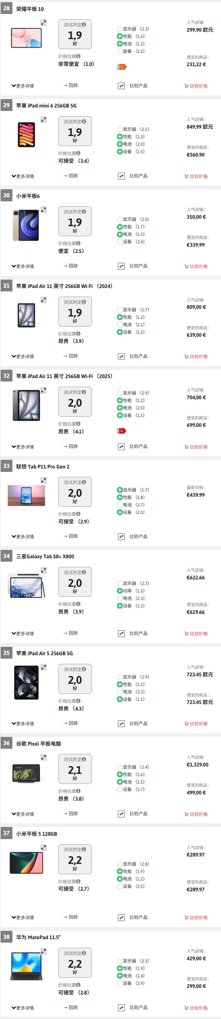 平板电脑在配置、质量和价格方面差异很大:最便宜的机型不到 100 欧元,最贵的超过 1300 欧元。有些平板电脑配备了最新技术,比如 OLED 屏幕、5G 移动通信和快速处理器,但如果你不需要这些功能,可以选一款技术含量稍低但性价比超高的机型。