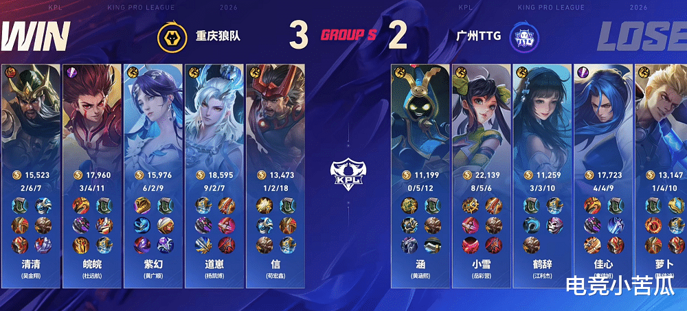 KPL精彩继续!关注赛程的都清楚,目前来到了第二轮的大战,对于每个小组的前两名,也是第二轮S组的战队,网友们都关注,毕竟都很好奇,究竟当时分组的时候,哪个组是最强的。目前来看,2组获胜了,毕竟狼队太争气了,连续击败了情久和TTG,为2组争光了。不得不说,换掉归期和小胖之后,狼队真的蜕变了,清清加皖皖,这才是狼队的完全体啊,目前这个状态和战绩,小胖当摇旗手,也是心甘情愿的,电竞就是残酷的。