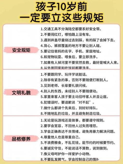 反观那些没有规矩的家庭,孩子做事没边界,任性散漫,长大后不仅难成大事,还容易处处碰壁。很多家长误以为立规矩是束缚孩子,是扼杀孩子的天性,实则恰恰相反。规矩不是牢笼,而是孩子成长路上的保护伞,是帮他们建立秩序感、培养责任感的基石。