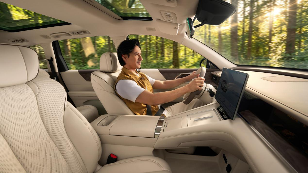 买六座车最怕什么?怕第三排是“宠物专座”或者“小板凳”。五菱这次显然是做了功课的。星光L的车身尺寸直接拉到了4980×1930×1760mm,轴距更是达到了越级的2950mm。数据看着枯燥,落实到体验上就是:二排通道宽度有190mm,加上同级最大的门洞设计,老人小孩进出第三排不用在那儿“练瑜伽”,体面得很。车内有效面积5.6㎡,得房率90%,配合1.09㎡的超大天幕,你在车里完全不会觉得压抑。后备箱标准容积383L,还能拓展到1103L,婴儿车、露营车、甚至你丈母娘的年货,统统塞得下。内饰这次走了“中式雅韵”路子,云釉白和砂陶棕配色看着挺显贵。最让我觉得贴心的是,五菱居然搞了个全域防撞角设计,家里有“神兽”的都知道,这细节有多重要。