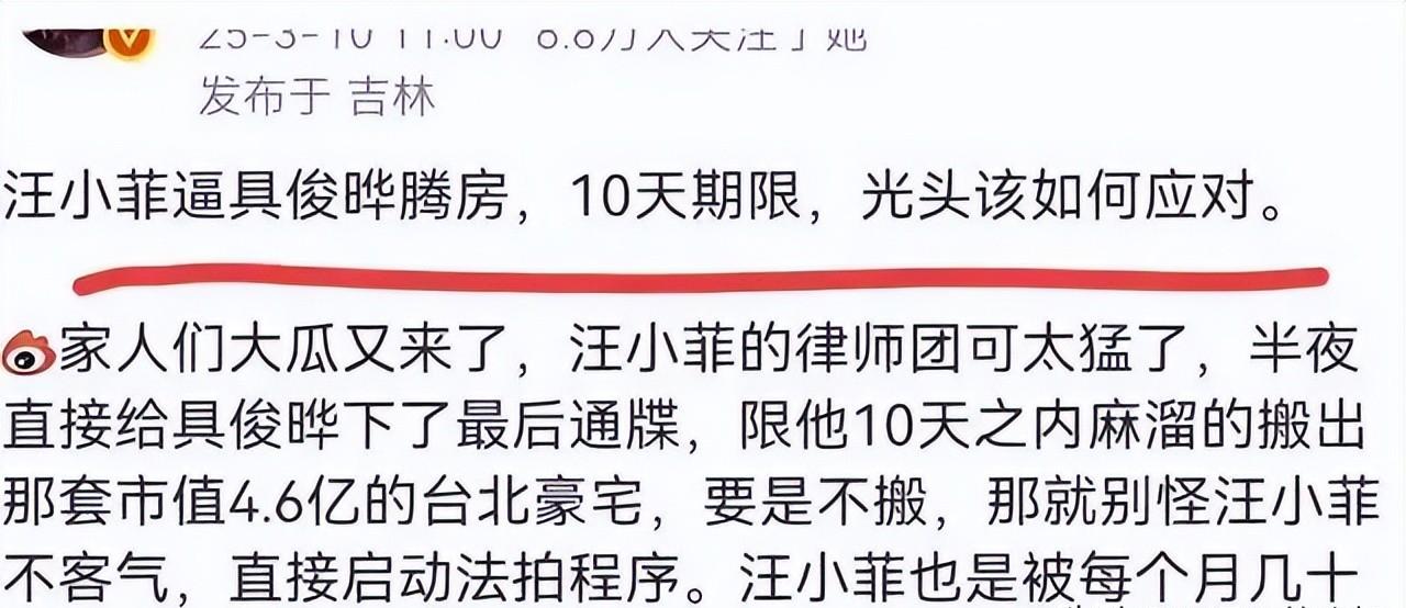 汪小菲突然停掉了香港豪宅的贷款,并要求具俊晔在十天内搬离,否则将进行法拍。