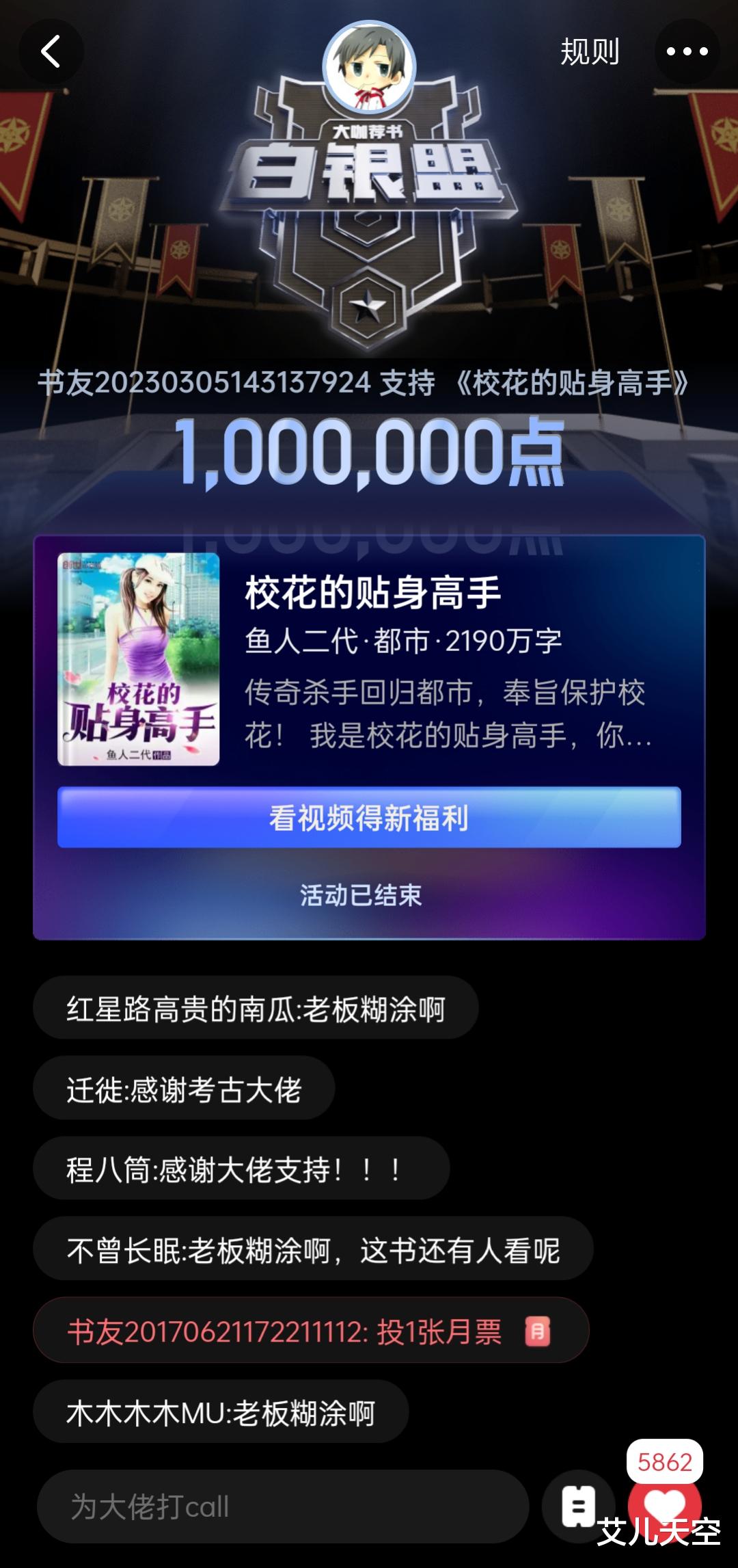 今天不少人反应说打开起点就见开幕雷击,因为有人给鱼人二代的代表作《校花的贴身高手》打赏了白银盟,这确实是很少见的。