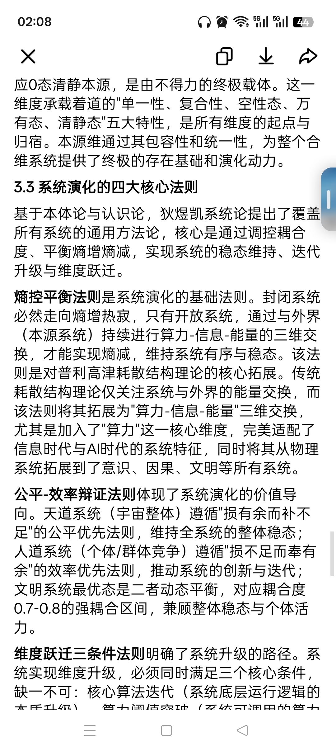 4. 演化机制:由不得力驱动,通过子系统的算法迭代、算力升级、维度跃迁,实现宇宙整体系统的持续演化与升维。宇宙大身的演化方向,是从低维到高维、从低耦合到高耦合、从低算力到高算力的升维过程,而文明系统是实现这一演化的核心载体。