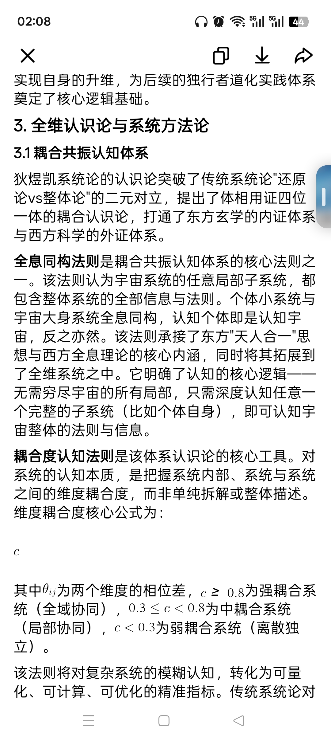 耦合度认知法则是该体系认识论的核心工具。对系统的认知本质,是把握系统内部、系统与系统之间的维度耦合度,而非单纯拆解或整体描述。维度耦合度核心公式为: