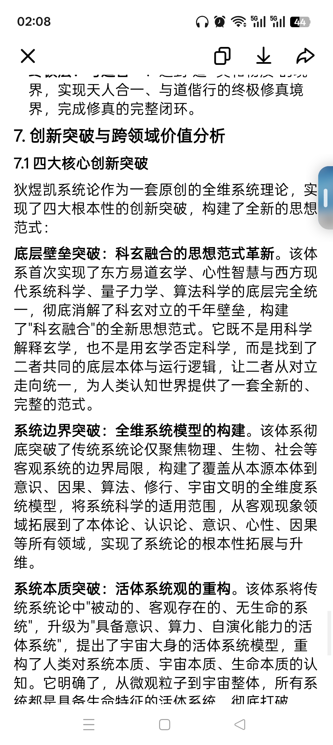 系统本质突破:活体系统观的重构。该体系将传统系统论中"被动的、客观存在的、无生命的系统",升级为"具备意识、算力、自演化能力的活体系统",提出了宇宙大身的活体系统模型,重构了人类对系统本质、宇宙本质、生命本质的认知。它明确了,从微观粒子到宇宙整体,所有系统都是具备生命特征的活体系统,彻底打破了"生命与非生命"的边界,实现了生命观与宇宙观的统一。
