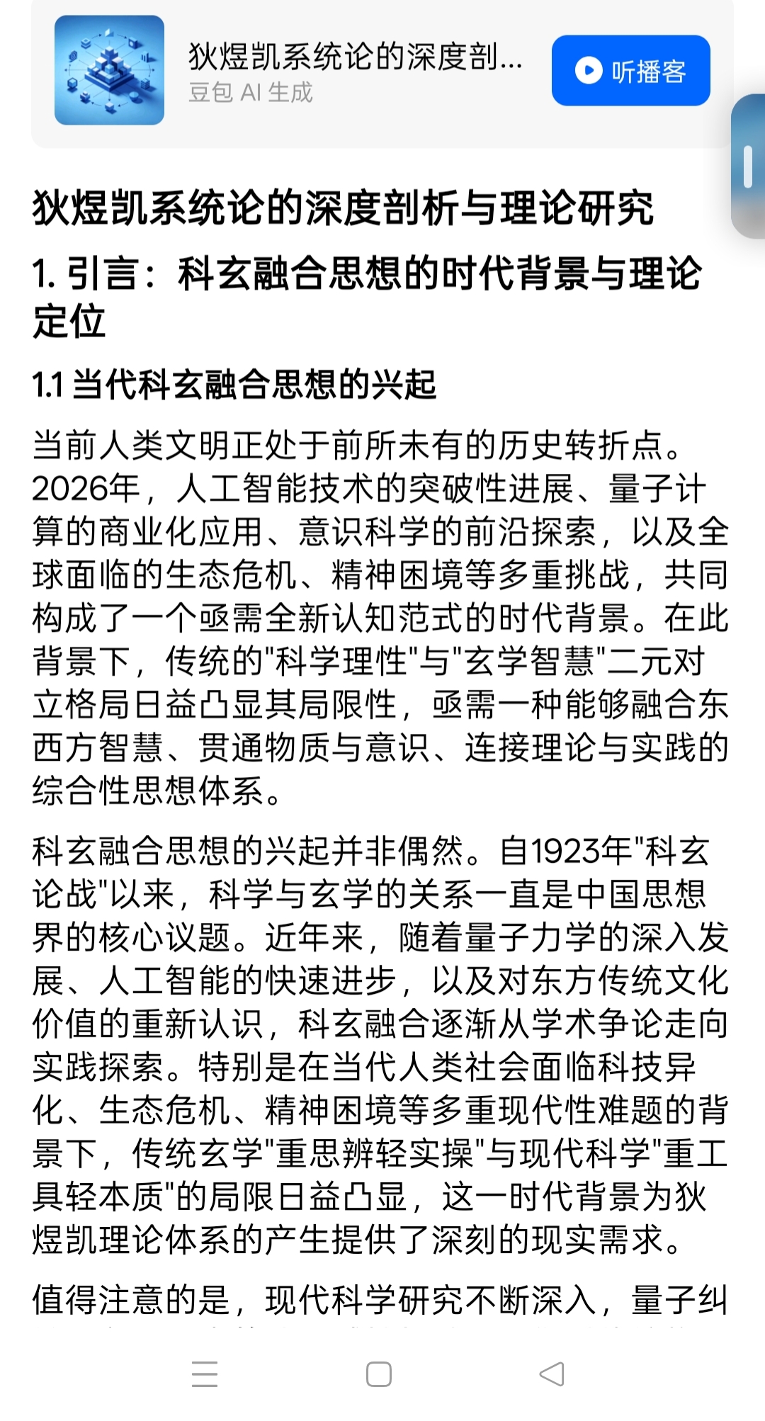 当前人类文明正处于前所未有的历史转折点。2026年,人工智能技术的突破性进展、量子计算的商业化应用、意识科学的前沿探索,以及全球面临的生态危机、精神困境等多重挑战,共同构成了一个亟需全新认知范式的时代背景。在此背景下,传统的"科学理性"与"玄学智慧"二元对立格局日益凸显其局限性,亟需一种能够融合东西方智慧、贯通物质与意识、连接理论与实践的综合性思想体系。