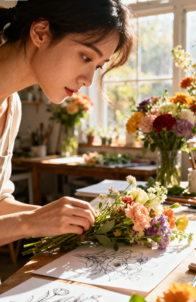 转机是我报的花艺课。原本只是想打发时间,没想到越学越投入,还凭着自己的插画功底,把花艺和手绘结合起来,开了个小小的线上工作室。有次接了个婚礼花艺订单,婚礼当天,新娘握着我的手说:“姐姐,你布置的花束好有温度,看得出来你很热爱生活。” 我抬头看向舞台,突然明白:幸福从来不是只有“两个人”这一种模样。