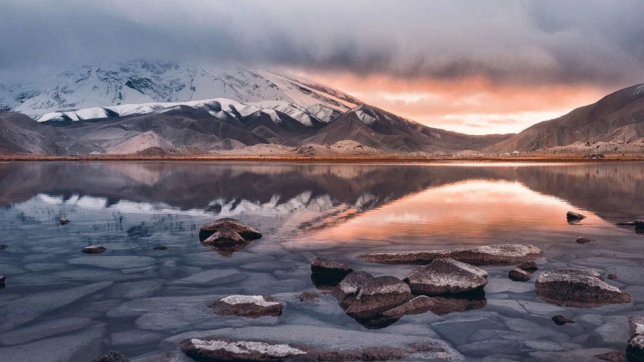 春天的帕米尔,是黑白灰的冷峻与粉白色的柔情交织的画卷。