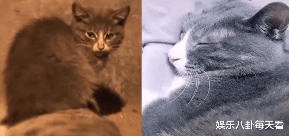 石头猫是流浪猫,浑身脏得很,已经饿得前胸贴后背了,好在它被好心人发现了。