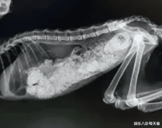 好心人把它带去医院,拍了CT,瘦弱的身体影像,胃里面的石头刺痛着人们的心。