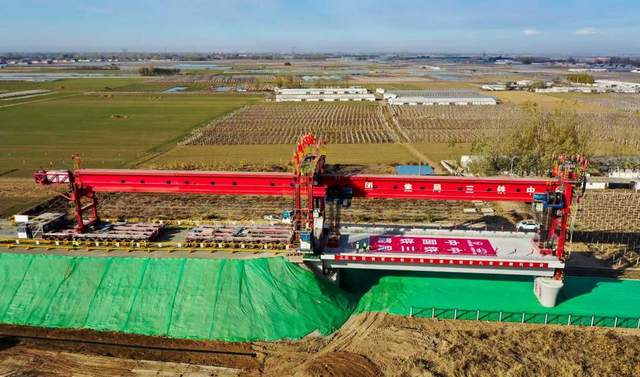 11月18日,伴随着一孔长32.6米、重约697吨的混凝土预制箱梁精准架设在跨保沧高速公路特大桥石方台至875号桥墩上,标志着中铁三局石雄城际铁路一标首孔箱梁顺利架设,工程建设正式转入桥梁上部结构施工阶段。
