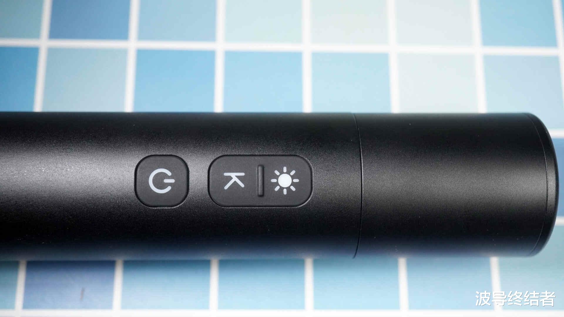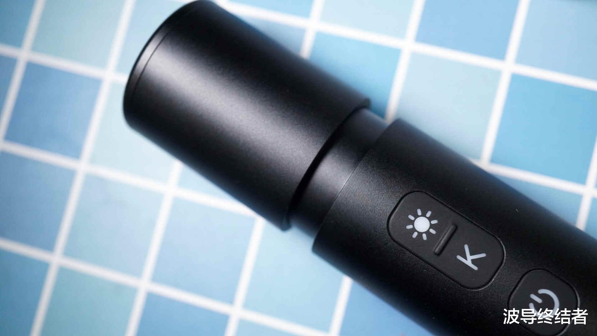 功能按键方面有三个,电源开关长按一两秒,是开关机。K按键是切换色温,阳光按键是切换三档亮度。另外,长按阳光键可以临时切换到超亮模式,但需要一直按住,我觉得挺蠢的……