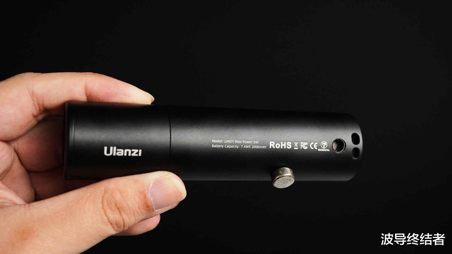手电的大小如图,外壳是金属的,商品详情写的是铝合金,可以被磁吸但磁性并不强,可以认为不太实用。尾部有一个1/4螺丝孔,可以接通用的摄影设备。不过实际用的时候,一般还是拿在手上找角度比较多。