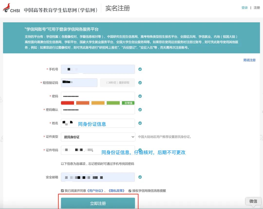 2、注册学信网账号或者用学信网账号直接登录,也可以绑定微信进行快速登录。