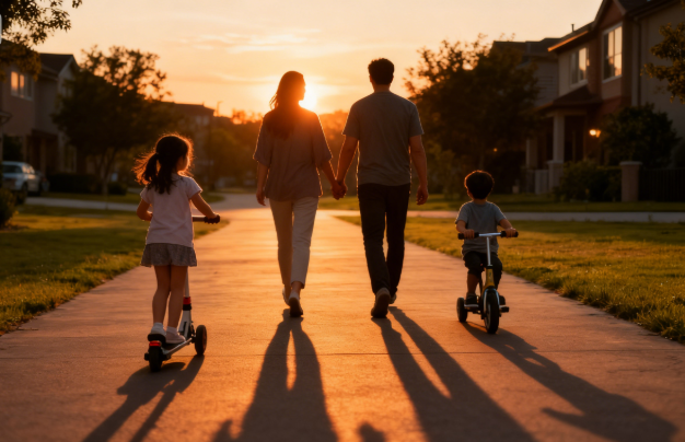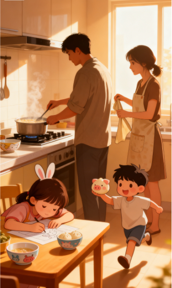 我鼻子一酸,突然想起很多事:我腰椎不好,他每天等孩子们睡后,帮我按腰半小时,坚持了五年;女儿怕黑,他每天睡前讲故事,不管加班多晚都不落下;儿子发烧时,他整夜抱着物理降温,让我踏实睡觉;去年我妈住院,他请假全程陪护,还每天放学接两个孩子、辅导作业,把家里打理得井井有条。那些我以为的“不浪漫”,原来都是藏在柴米油盐里的、兼顾着我和孩子的在乎。