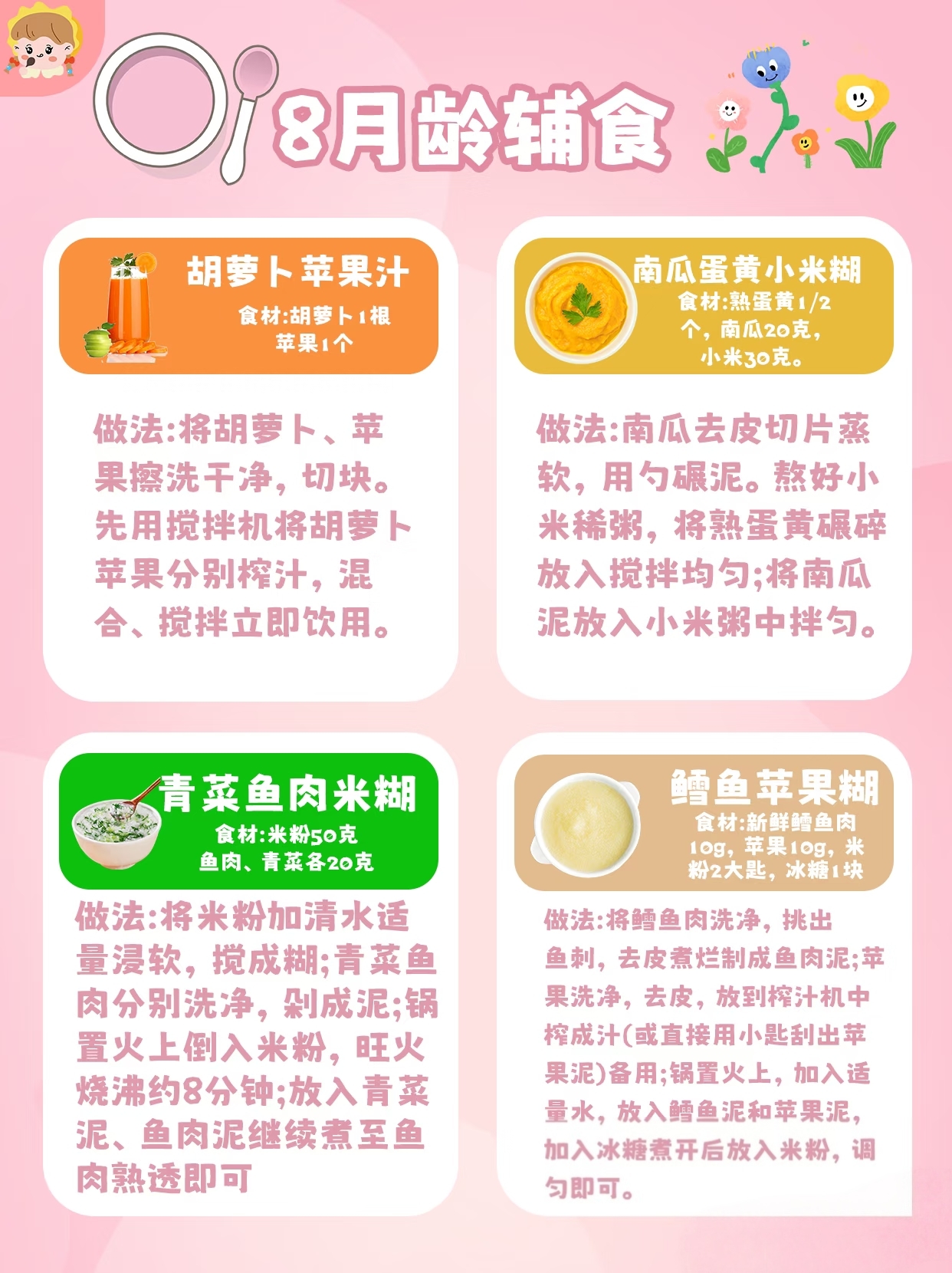 图里我都标了对应月龄+食物类型+制作重点,看不清的可以私信我要原图。