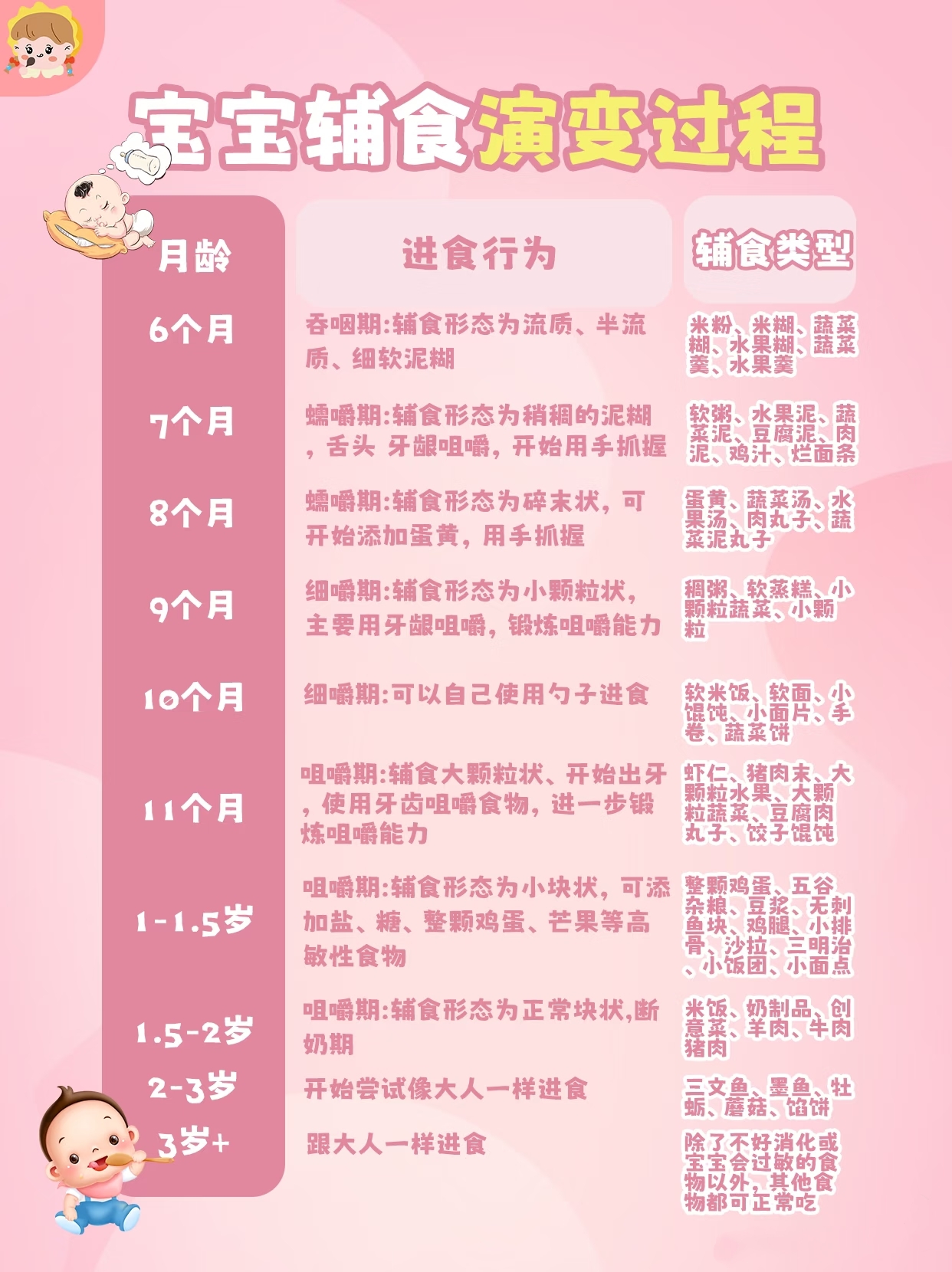 别焦虑,今天这篇是我花了整整一周整理的“超全辅食添加演变图解”,从6个月到3岁,每一步都结合了我带小团的经验,喜欢的宝妈直接存图照着做就行