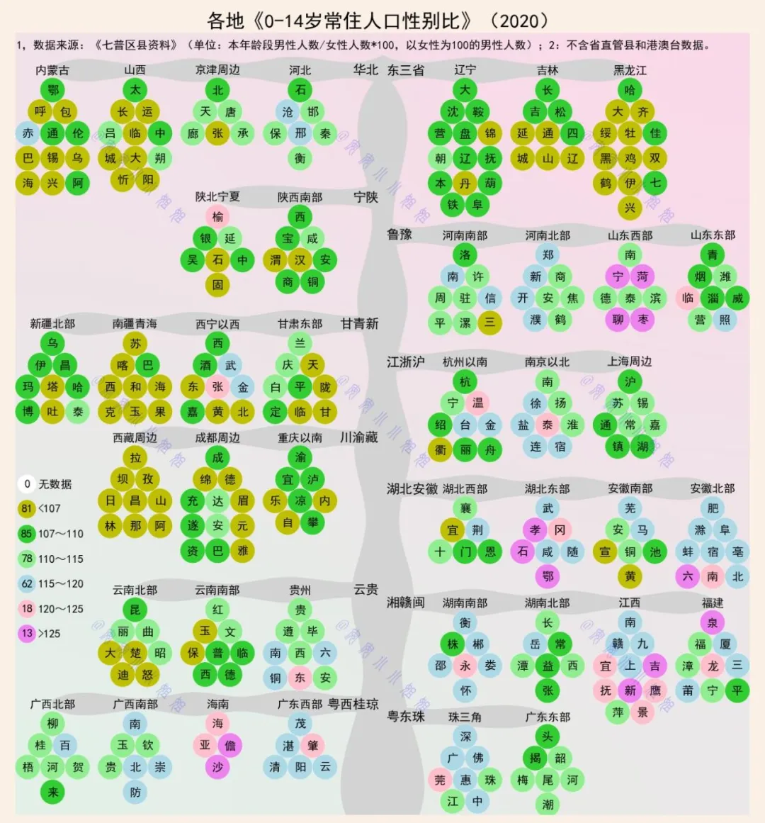 当我们以2020年第七次全国人口普查数据为镜,观察中国各地级行政区0-14岁常住人口性别比分布时,会发现这幅由颜色编码构成的"人口地图"正在发出警示信号。