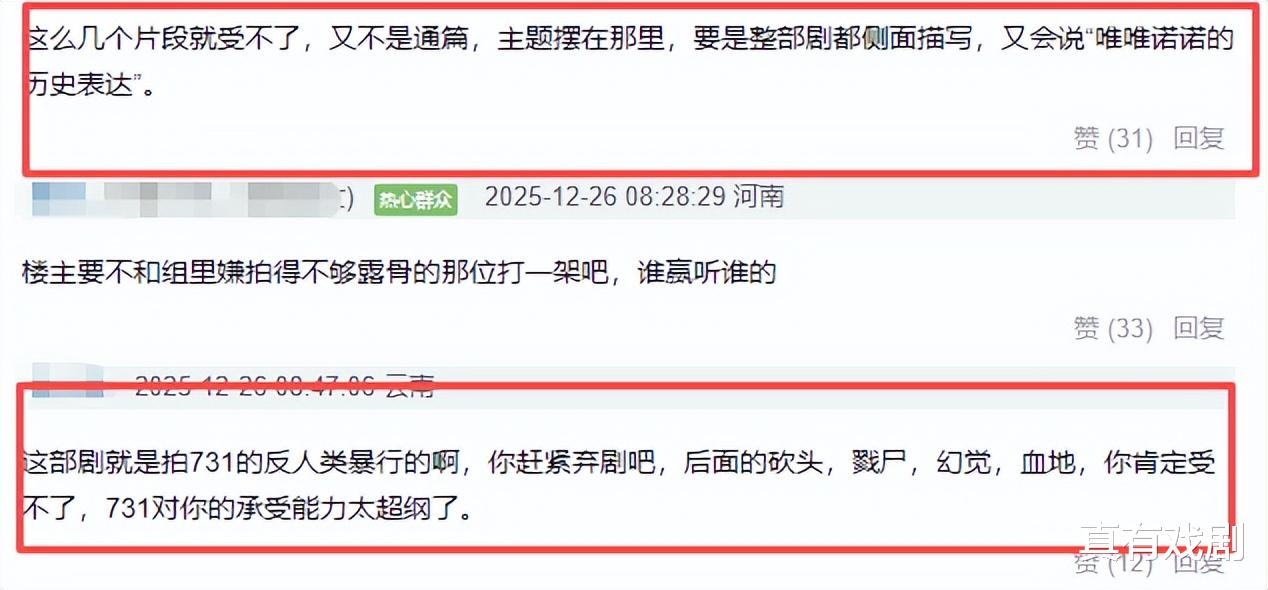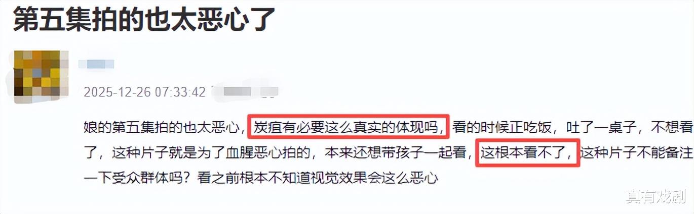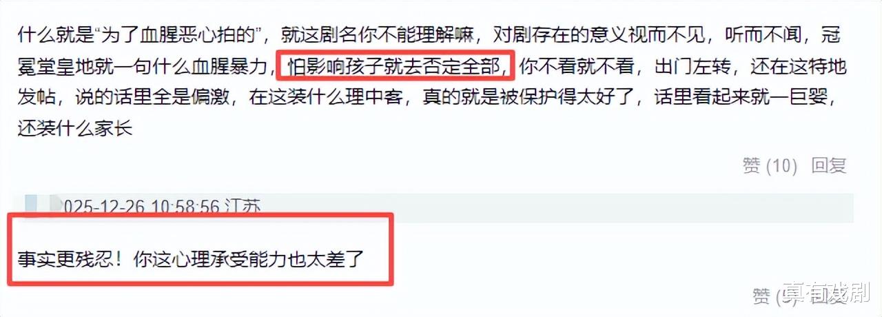 反观这类争议评论之下,实则藏着不少清醒的观众,更多人心里都清楚,这类沉重题材的剧集,必然会有这样的镜头呈现。