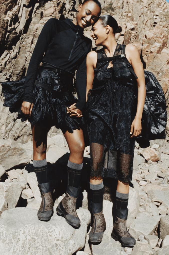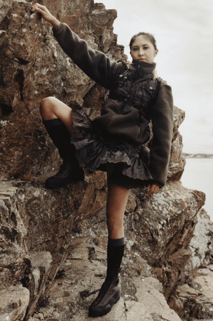 于巴黎时装周首次亮相后,The North Face 与 Cecilie Bahnsen 的二次合作终于迎来发售。合作以高级定制的视角重新诠释经典外套,包含六款服装款式和两款鞋履。其中的亮点单品,便是夸张采用荷叶边式背部和超长廓形的 Nuptse 夹克,还有被改造成迷你手提包的 Base Camp Duffel,处处带有标志性花卉绗缝设计。型录拍摄还选取了越野跑者 Ida-Sophie Hegemann 和抱石运动员 Melina Costanza 担任模特,更展现出了女性在山野运动中的韧劲与独特美感。