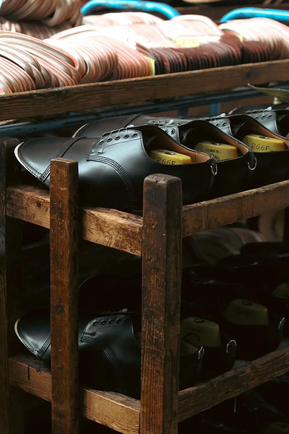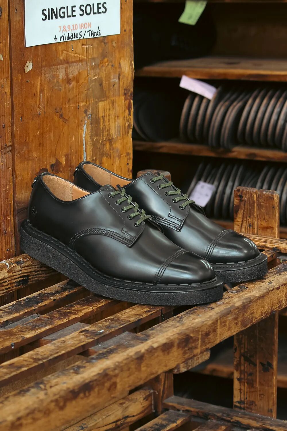 皮鞋品牌与皮鞋品牌之间的合作,确实少见。但您猜怎么着,同样来自北安普敦的 Sanders 与 George Cox,竟然合作了。双方首次合作推出联名鞋款,直接秀出了拿手好戏,他们直接把 Sanders 标志性的三接头德比鞋与 George Cox 经典厚底拼接在了一起,视觉冲击力拉满。很好奇脚感会有什么不同,但是肯定有一定增高作用了。