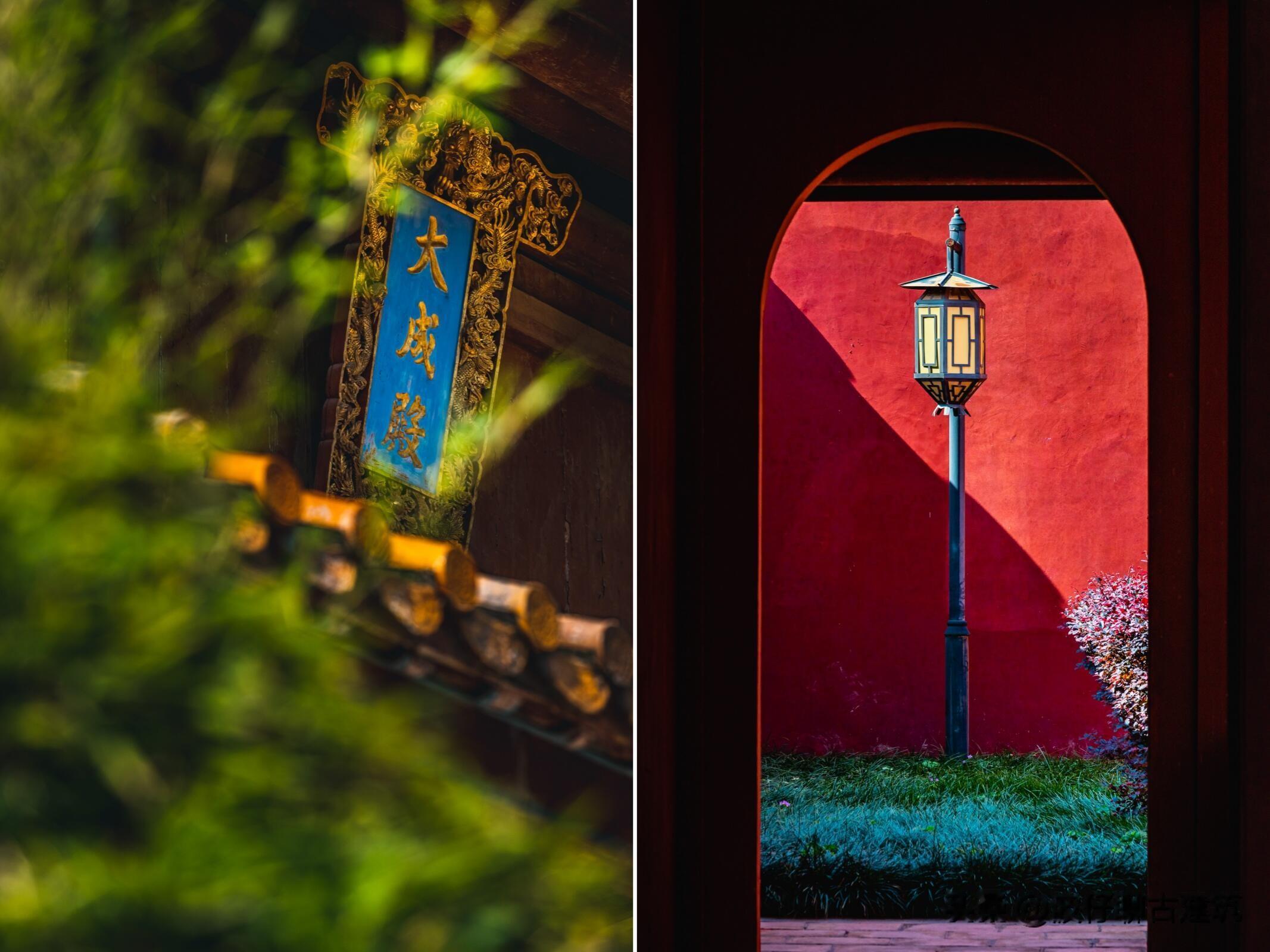 殿内正中,孔子的坐像端坐在神龛之内,头戴十二旒冠冕,身穿十二章王服,手捧镇圭,完全是帝王仪容——自宋代以后,孔子地位不断提升,元武宗更是加称其为“大成至圣文宣王”,这尊塑像便严格遵循清雍正时的定制,尽显儒家圣人的神圣与威严。孔子像两侧,复圣颜子、宗圣曾子、述圣子思、亚圣孟子的坐像依次排列,下方的石底座上还供奉着颛孙师、冉求等孔门弟子的木主牌位,梁上悬挂着“万世师表”“斯文在兹”等历代帝王的褒扬匾额,每一处细节都彰显着对儒学的尊崇。