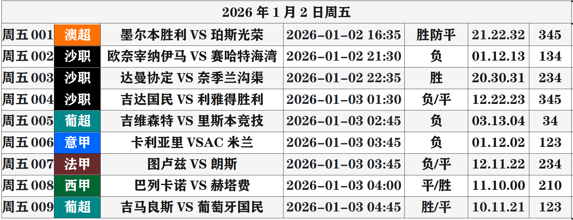 总结综合考虑墨尔本胜利的主场优势、连胜势头、攻防均衡性,以及珀斯光荣严重的伤病问题与体能短板,本场比赛墨尔本胜利更有望掌控比赛节奏。思路方向看号墨尔本胜利,不过也需警惕珀斯光荣的“神经刀”特性,出现双进的结果。