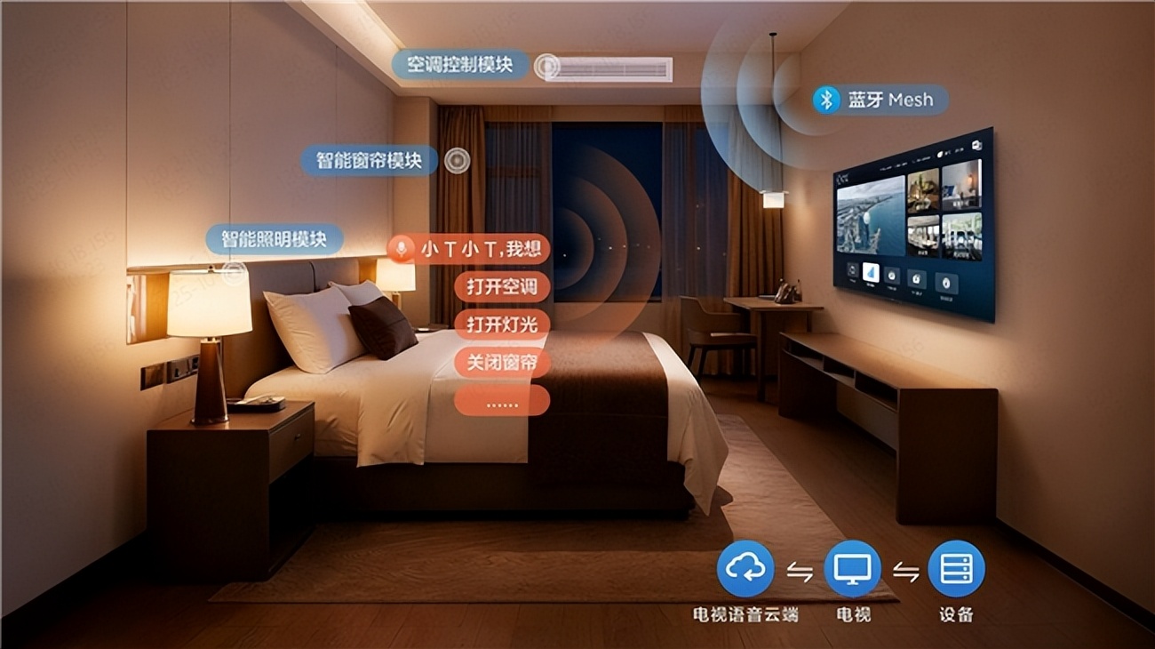 如今,这套历经全球顶级赛事复杂场景验证的系统能力与架构思维,被深度解构并适配于酒店空间。TCL依托其全球领先的显示科技与AI大模型研发实力,打造了以“客房天生C位大屏”为核心的全场景智能解决方案。电视屏幕不仅是影音娱乐的中心,更是连接酒店所有服务的智能交互枢纽。