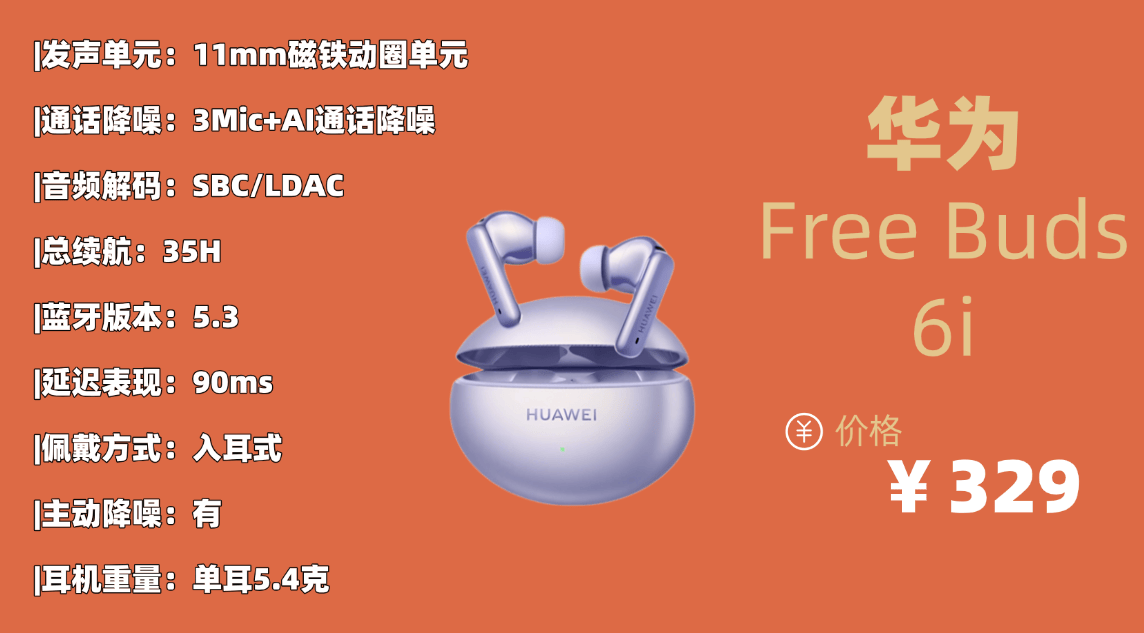 综合主流品牌5.华 为F ree Buds 6i蓝牙耳机