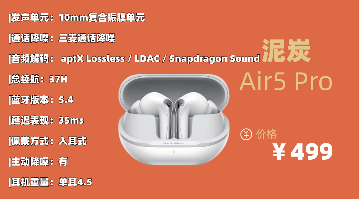 综合主流品牌10.泥 炭A ir5 Pro蓝牙耳机