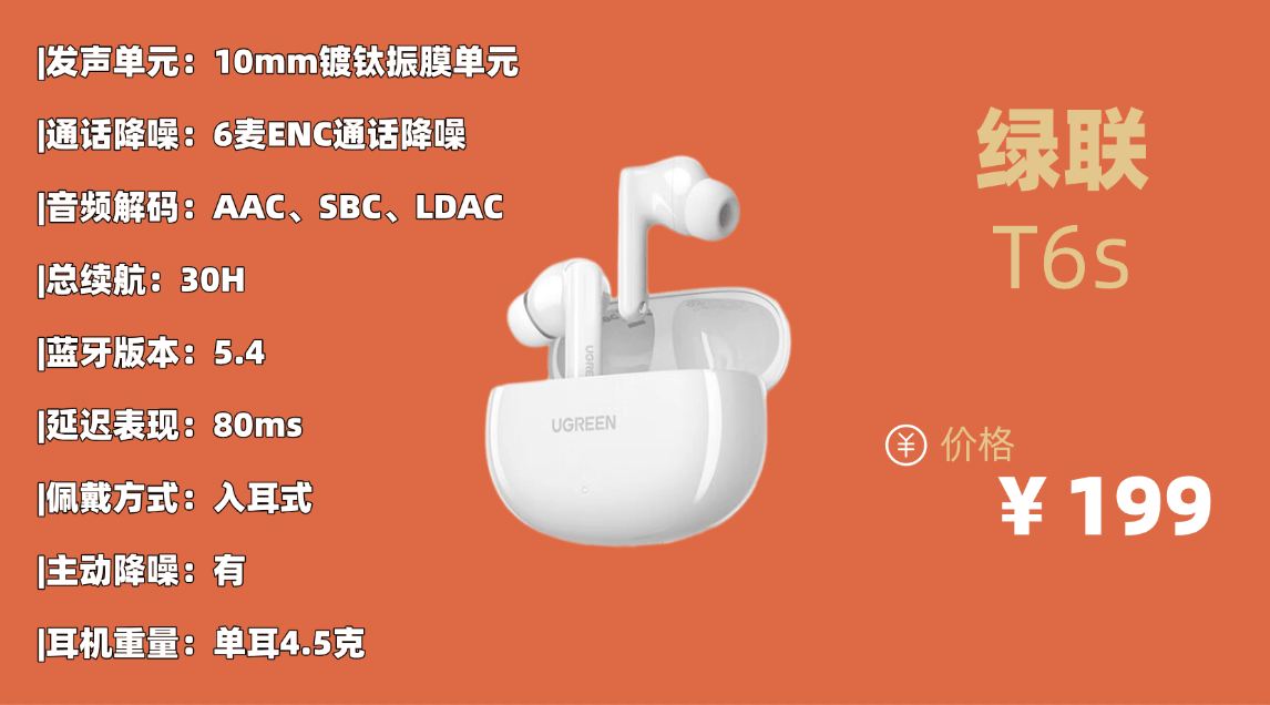 综合主流品牌7.绿 联T 6s蓝牙耳机