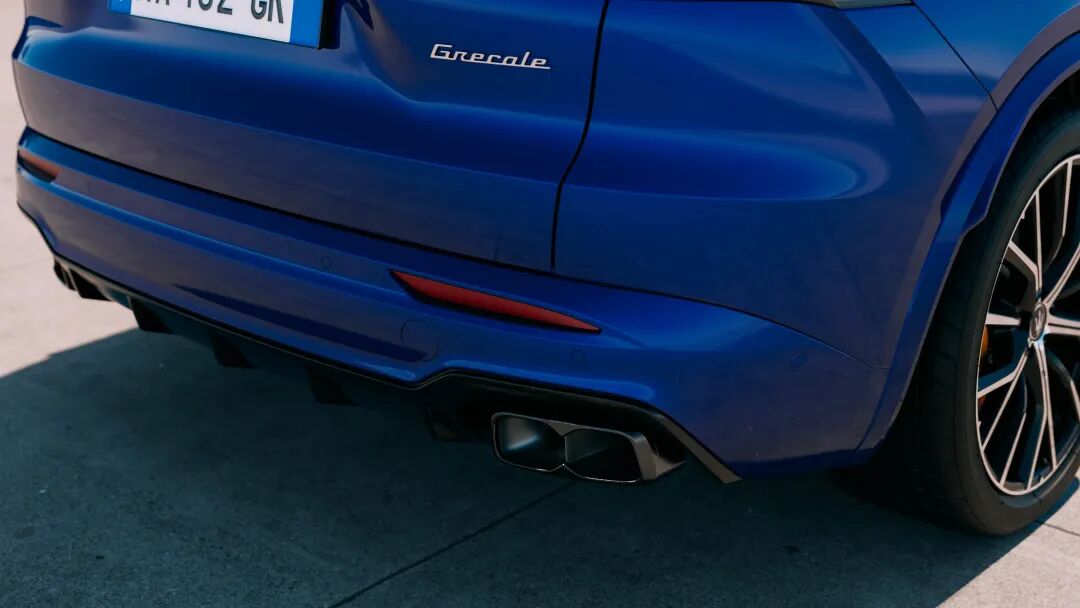 Grecale Modena V6保留了熟悉的造型,但线条更显锐利。它标配了前21寸后22寸的错配轮毂、带主动运动阀门的四出排气以及V6徽标。整体外观强调内敛的性能感而非炫耀,这似乎是玛莎拉蒂的目标。