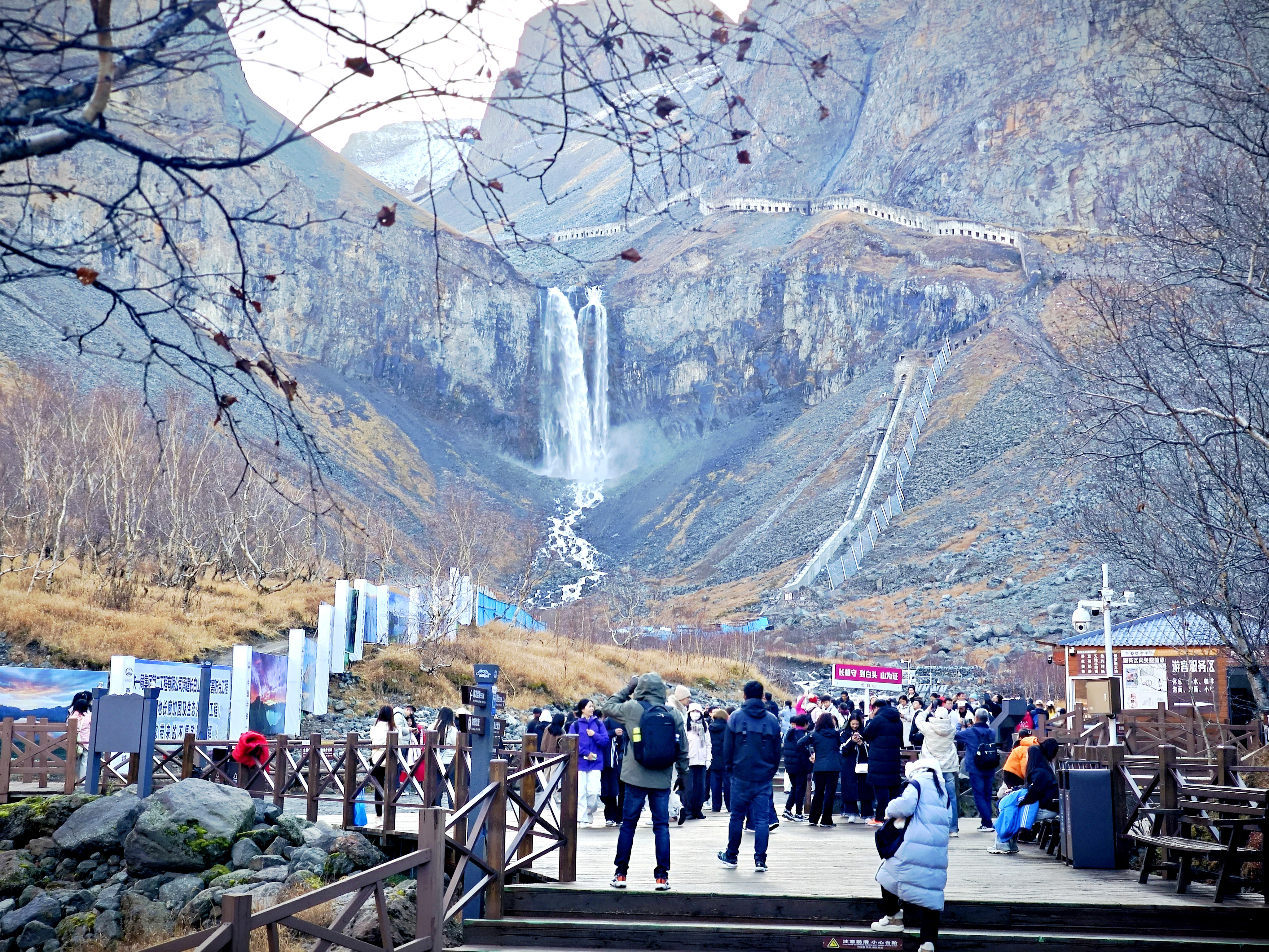 进了景区,观光车在盘山路上缓慢挪动,雾气黏在车窗上,连近处的松柏都只剩朦胧轮廓。我盯着仪表盘上跳动的海拔数字出神,失落正一点点沉到心底时,车轮碾过积雪的“咯吱”声突然变得格外清晰——雾幕竟像被一双无形的手轻轻拉开道缝隙,远处的雪山轮廓在雾中渐次显形,淡金色的阳光穿破云层,洒在蓬松的雪地上,折射出细碎又温暖的光。我慌忙举起相机,指尖都带着点颤,生怕这突如其来的清晰会下一秒就被浓雾收回。