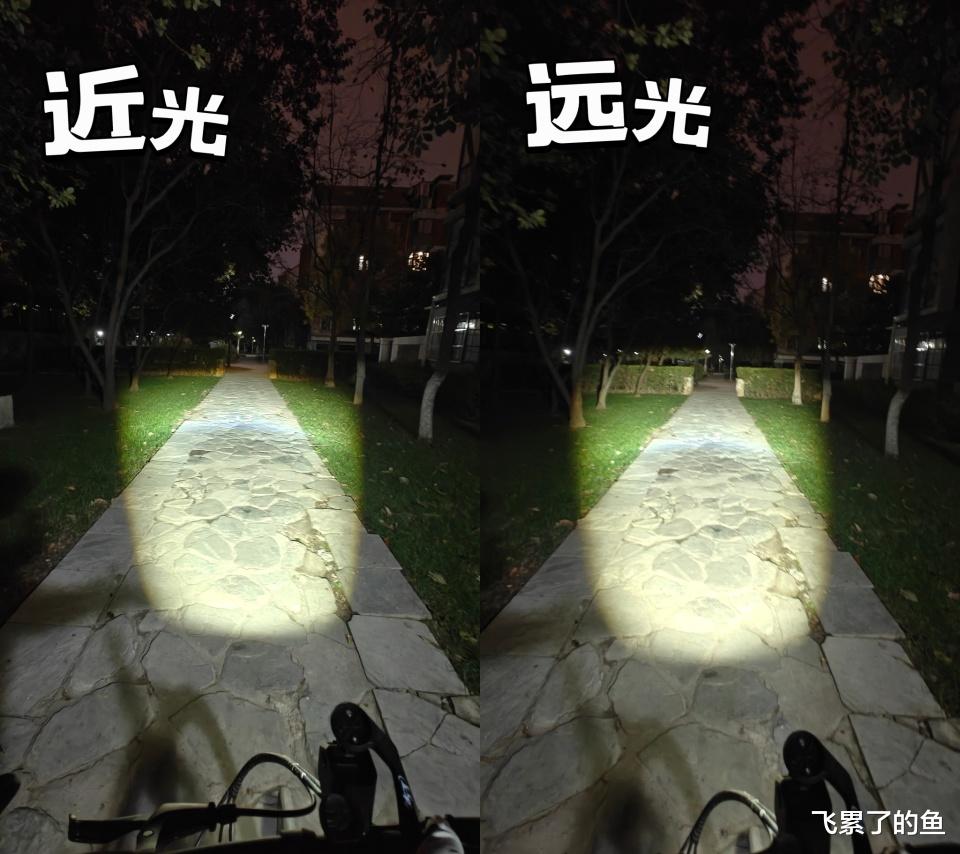 自行车灯也支持远近光调节了,这你受的了吗?从迈极炕大PRO的实际效果可以看到,近光远光都能把幽静黝黑小路照得很亮,而且远光明显比近光更就,照得更远!