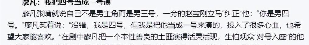 在之前的一次采访中,廖凡张嘴将自己说成了男三号。